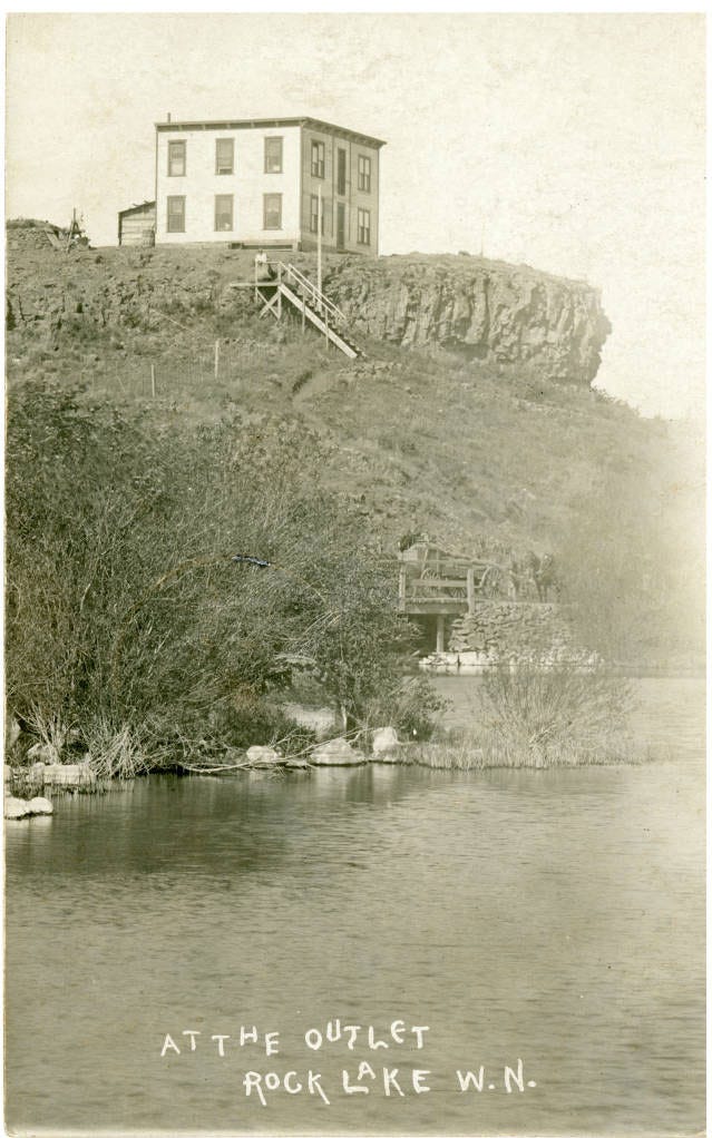 There isn’t much information on Rock Lake prior to the early 1900s, and it didn’t last long. In 1905 Willis Anson Evans heard the railroad was coming through and purchased land along the outflow of Rock Lake. Evans built a store, dance hall and small hotel/resort called Cliff House. Rooms rented for 75 cents per night, and Mrs. Evans’ meals were 35 cents each, or three for a buck. Railroad workers often dined at Cliff House while building the railroad trestle.
