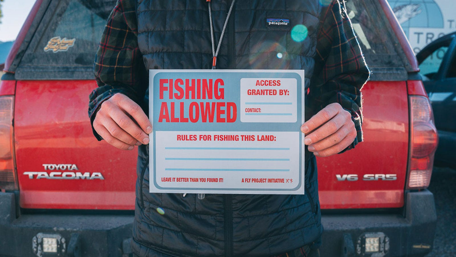 I went to a creativity conference once, and the speaker was an illustrator expressing what an important role designers and illustrators have in influencing change. We called a company that makes most of the No Trespassing/No Hunting signs that we see in the United States, and had them make our own House of Fly custom “Fishing Allowed” sign.