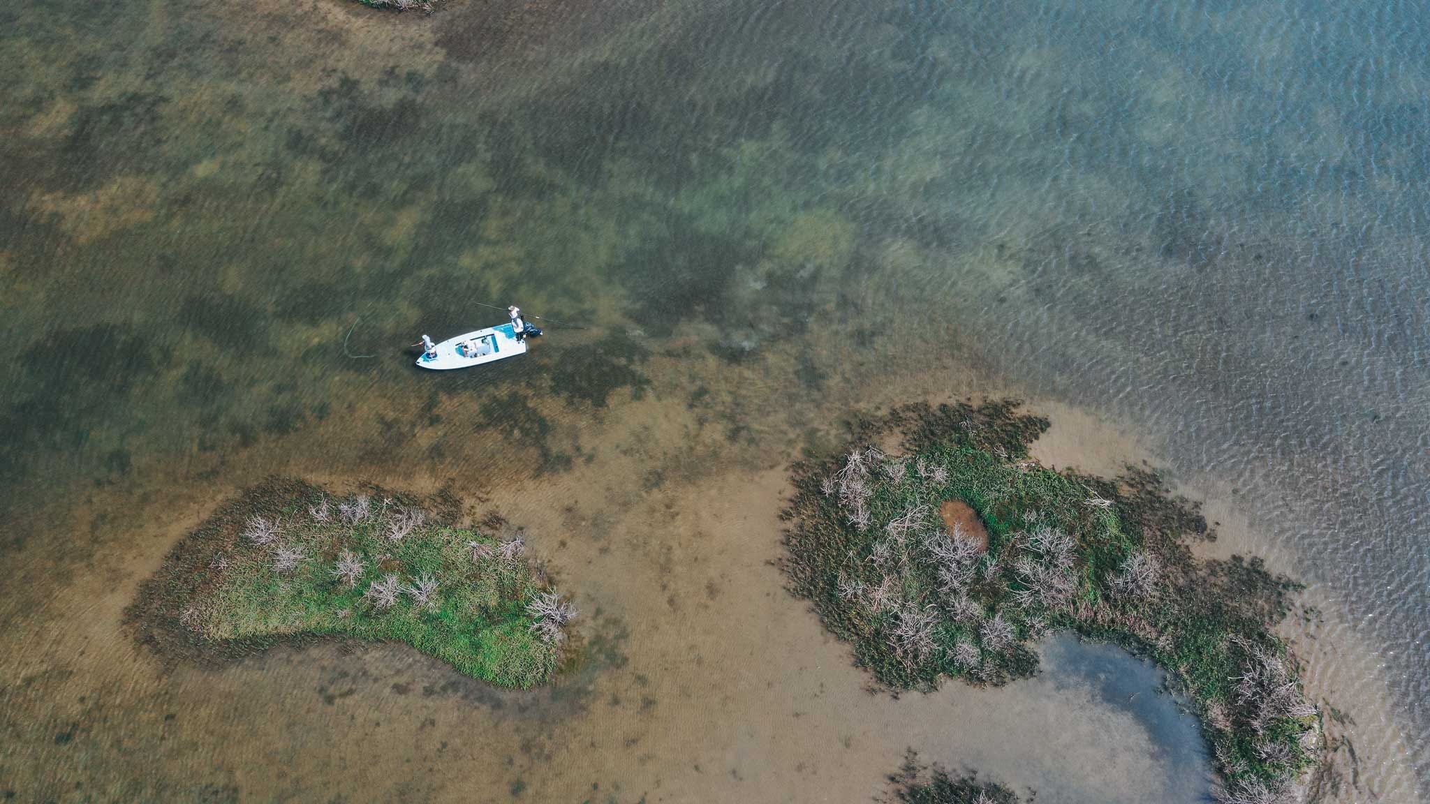 After a 20-30 minute ride, Mason just turned into a grass canal channel and drove up the narrow creek like he had done it a thousand times. I remember thinking, “I would have had this boat beached running up a canal like that”. The first day was very cloudy and windy, not ideal conditions for sight-fishing redfish. Thankfully, Mason knew where to go and what to look for. When we didn’t have sun, it was a game of looking for tails or backs of reds. We had a slow morning until we rounded a corner and he told me to be ready, sure enough, we started getting into fish that were pushed up in the skinny water, and much more visible.