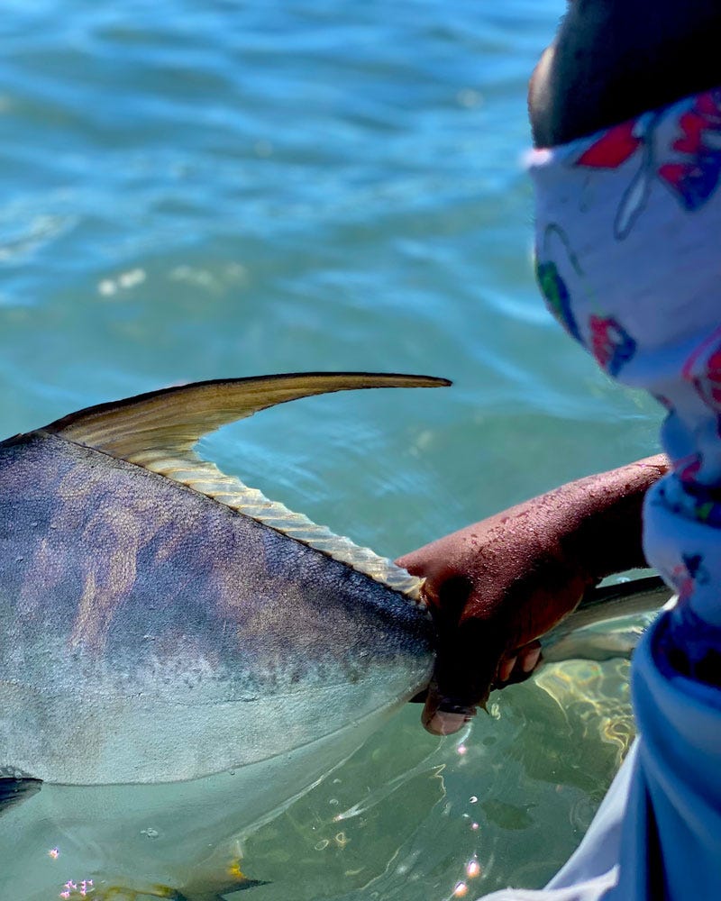 The truth is, choosing to chase permit is a commitment to fail—a choice that says you’re willing to battle it out in your head, trying to keep that white flag at bay. It also demonstrates that you understand challenge and reward, the power of keeping faith, and stars eventually aligning. Saying, I do, also means long days on a boat, possibly heaving on the tide, shins and arches aching, all while scanning the water for those dark tails and dorsals, or a subtle, almost imperceptible silvery flash.