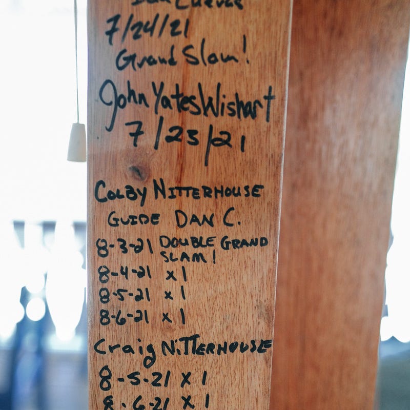 That evening I accepted a Sharpie from the lodge manager and signed my name on a beam, right next to dozens of other fortunate anglers who’d earned the right to do so. I was the only one to get a permit that week and was now part of the club. I was already promising to be calmer next time, telling myself, It’s just a permit, right?