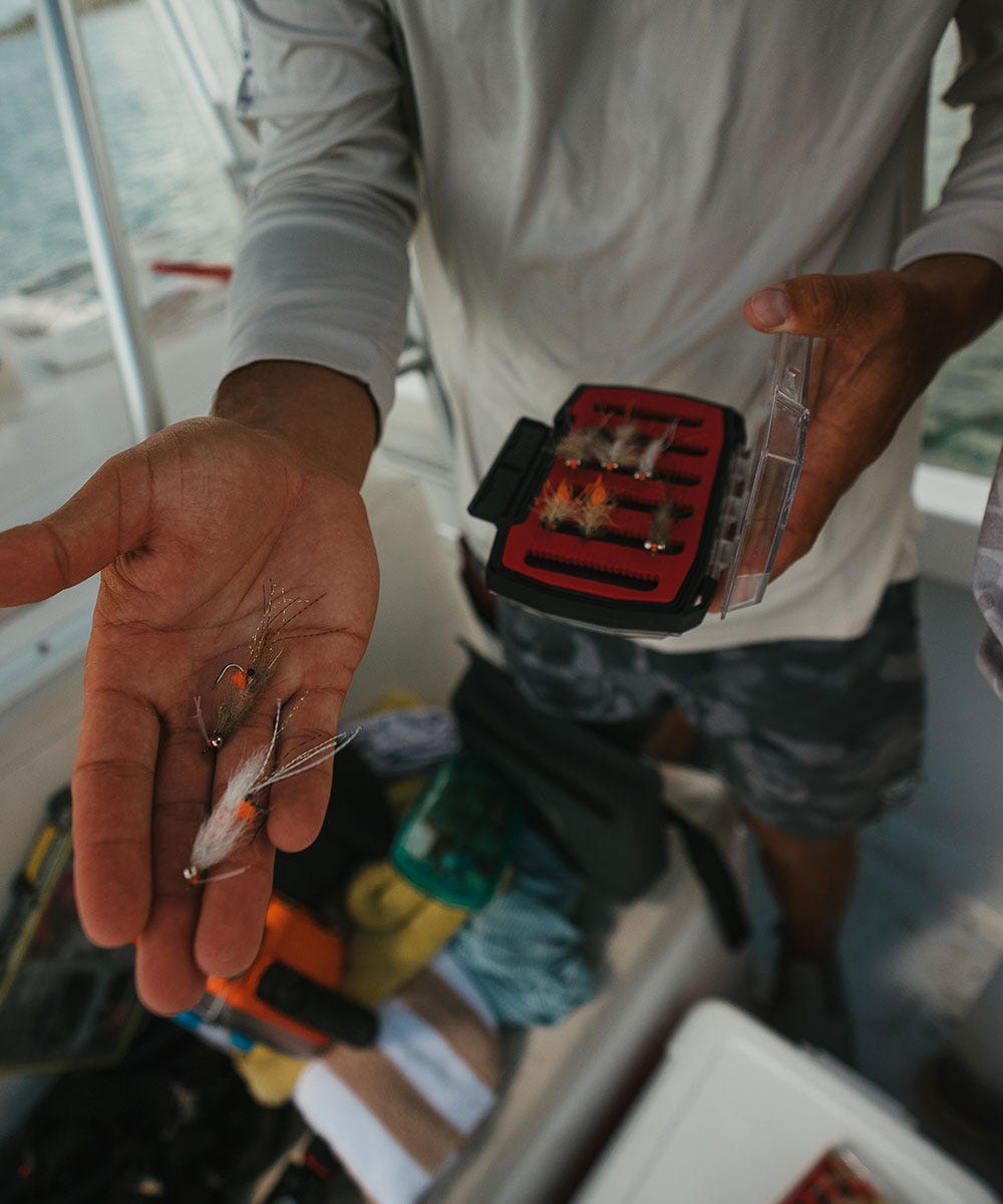 We drove the boat across the bay to the small island town where our rental home and golf cart were. Immediately, we sat on the back patio after taking it all in and rigged up all our Fly Project setups. We brought two 8 weight Squatch’s, a 7wt Squatch and the new 8wt Western fly rods, all nine feet long. We paired them up with 200-250 yards of Rasta Top Shelf backing and the Ballistic Pro Performance - Tropics fly line. The setups were so dialed, we just needed to hit the flats and get out casting them.