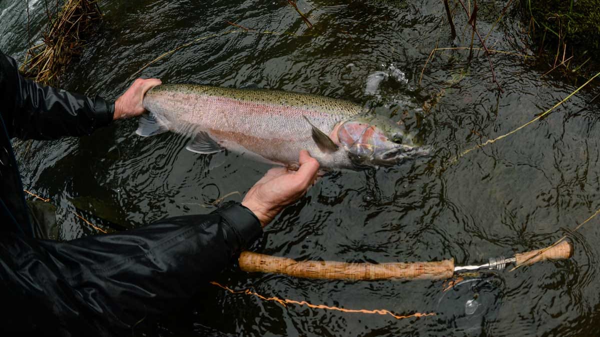 There was nothing wrong with those people. They were nice, happy, talkative, and they fished. But, the hatchery/wild debate is a conundrum found along the West Coast’s steelhead waters from northern California to British Columbia. Some people want hatchery fish because the harvest and subsequent feast are huge draw. I get it. When I was commercial fishing in the Gulf of Alaska and told fellow fishermen that I also loved catch-and-release fly fishing, they told me I was simply “playing with fish.” I get that too—I like to eat halibut, wild Alaska salmon, and shellfish of all variety as much as the next person in line. But I also think that wild fish are superior, and that there is immense value in connecting to something that was born in a stream, acclimated to its surroundings, and is specially equipped to navigate all the natural changes in an ecosystem. Hatchery fish, in my mind, are second rate citizens. As Hickman and I ate our meals I thought about that very thing and could not help myself from saying something.