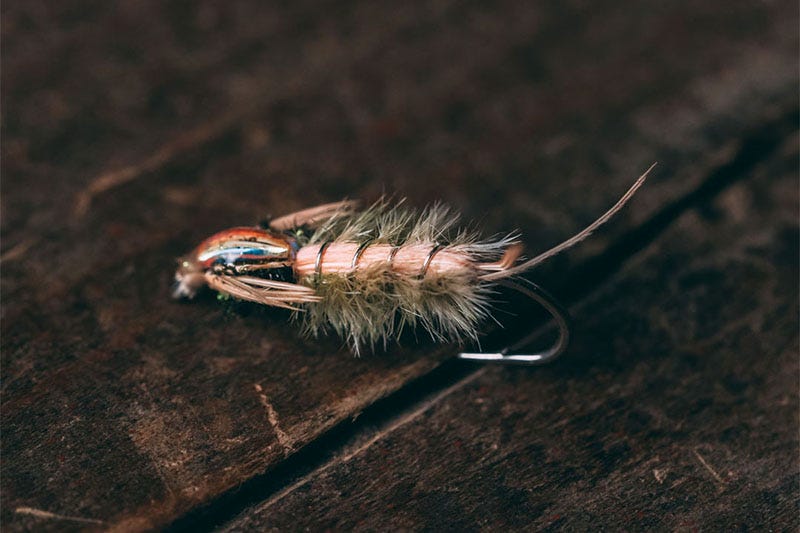Why: Callibaetis are the main mayfly species found in productive western lakes. When they are present, they typically occur in large numbers. Although many fly fishers gravitate to fishing dries and emergers, imitating the slender, active nymphs offers the largest margin of success. My Herl May Flashback is one of my go-to Callibaetis nymphs. The flashback wing case suggests the trapped gases the nymphs use to aid in emergence, and the contrasting peacock herl thorax represents the darkened wing pads and thorax of the natural nymphs. This simple fly doesn’t look like much, but when Callibaetis nymphs are on the menu, it can be magical.