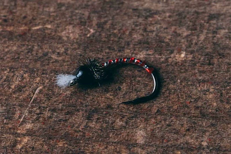 Why: Before a chironomid pupa is fully gassed up and bright, they are often a transitional pewter or gunmetal color. Trout often key in on these pupa. My Grey Boy does an excellent job suggesting this phase. The subtle hot orange hot spot also stands out in a crowd, calling fish over to investigate and take it. When the hatch is dense and chironomids are emerging, as it often is, having a pattern that stands out in the crowd can be a difference maker.