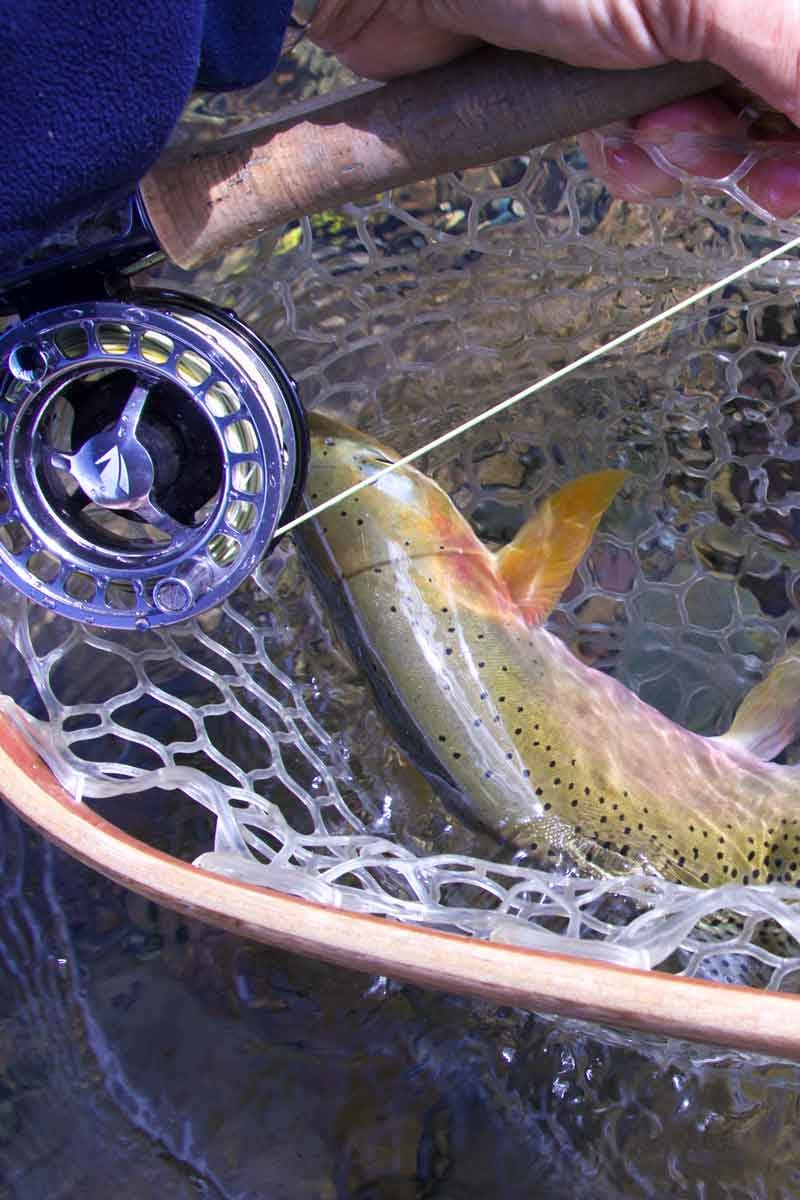 "Goodrich had caught half a dozen very fine trout," wrote Meriwether Lewis. "These trout (caught in the falls) are from sixteen to twenty-three inches in length, precisely resemble our mountain or speckled trout in form and the position of their fins, but the specks on these are of a deep black instead of the red or gold color of those common to the U. States."Â