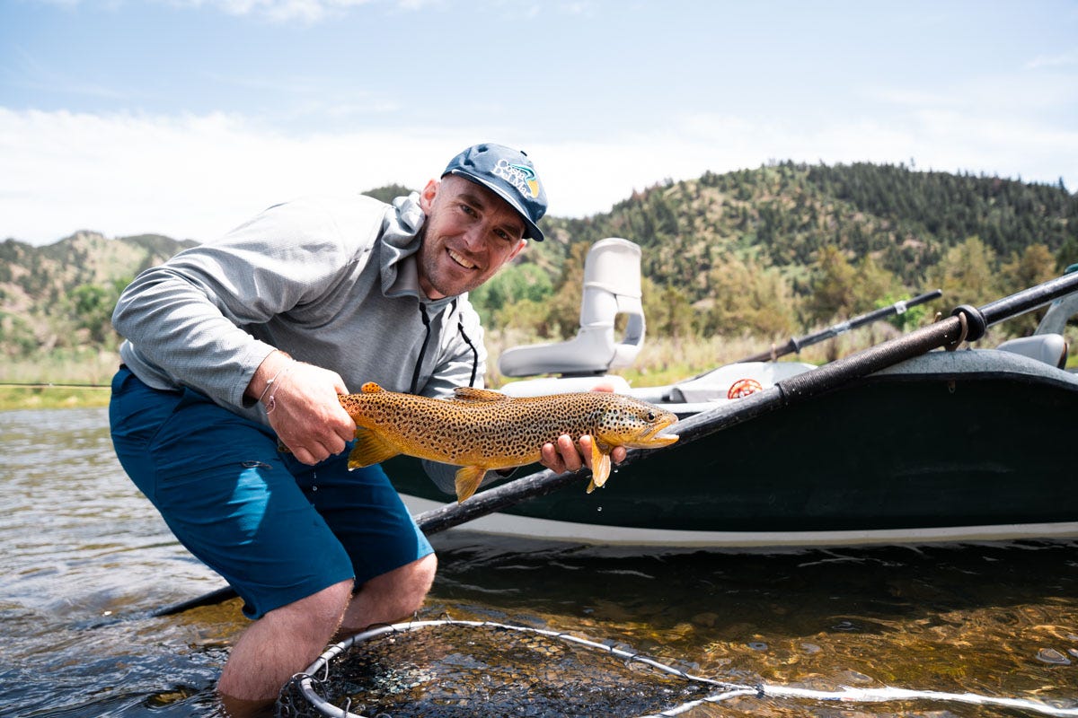 Photo: Paul Considine out fishing with Sam on the Missouri River and another brown trout that was duped by the Tailwater PMD Cripple